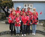 The picture is of Norwegian “old girls” in front of Forsaela apartment-house in Reykjavik, getting ready to support their team at the Laugardalur stadium.