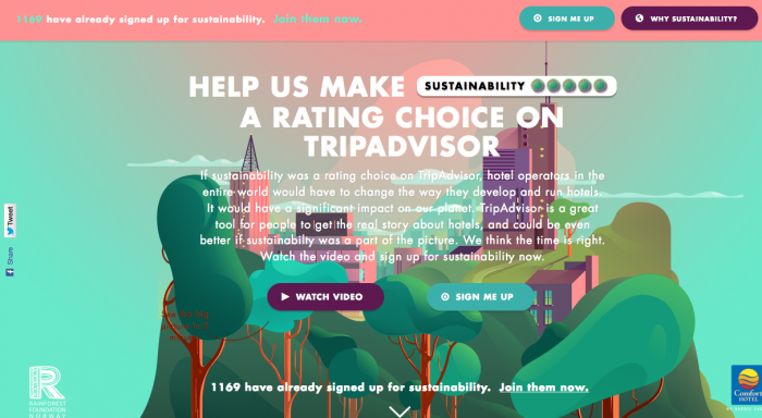 A new sustainability campaign initiated by the Norwegian Comfort Hotel chain and supported by the Rainforest Foundation Norway is pushing the need for a hotel sustainability rating on TripAdvisor, the popular travel website.