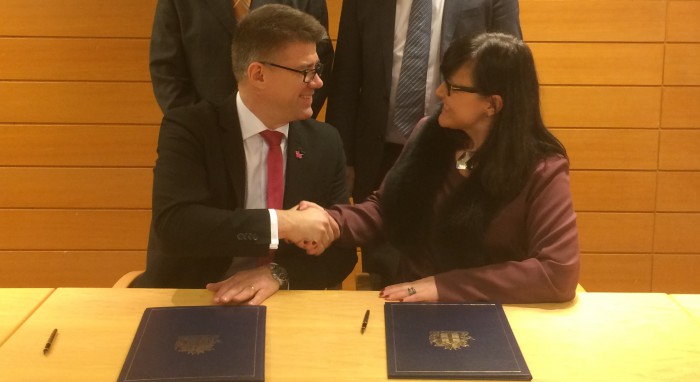 Gunnar Bragi Sveinsson and Rósbjörg Jónsdóttir during the signing of the agreement