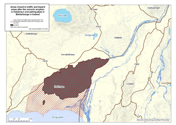 The Police District Commissioners in North Eastern, Eastern, Southern Iceland, and the National Commissioner of the Icelandic Police have decided to change the restricted area in Holuhraun with reference to the Civil Protection law no. 82/2008 article 23.