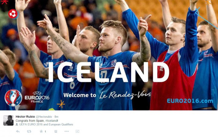 @Hectorubio “Congrats from Spain, #Iceland!”