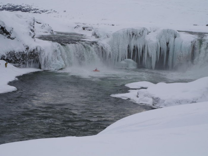 German adventurer Matze Brustmann from Munich is probably the first person to descend into the Goðafoss waterfall in winter. Vilhjálmur Grímsson followed Brustmann and his team of filmmakers and cameramen and captured the endeavor on camera.