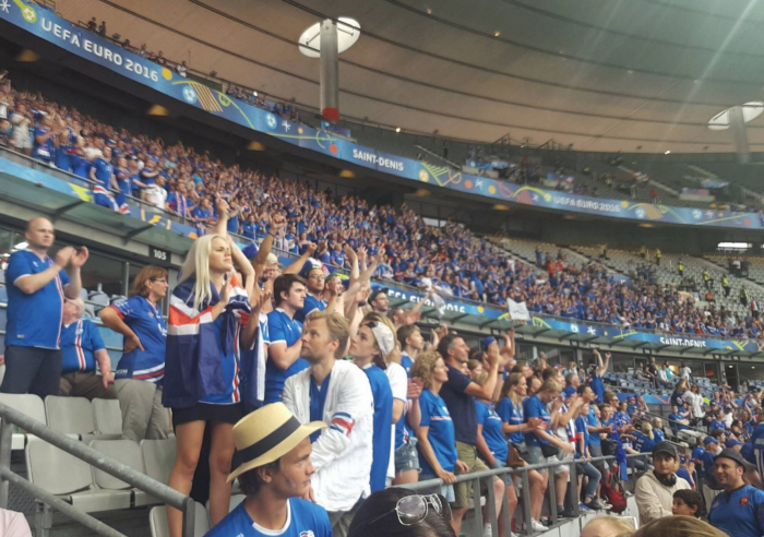 Iceland will be competing against England in the 16 finals at the European championships this evening. The game marks a monumental step in the sport of football for the Icelandic underdogs. Icelanders have been slowly gathering in Nice, France for the last few days and last night they came face to face with the English supporters which had taking over the small city with throughout the night which overwhelmed the Icelandic supporters. The reason for the high ratio of English supporters to Icelandic is in part because Iceland simply didn’t believe they would advance to the 16 finals, so only a handful of supporters had purchased tickets for the 16 finals. The rest had to purchase their tickets through the UEFA ticket portal, which offered first come first serve purchase.