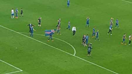 The mood of the Icelandic team supporters has been fantastic over the past couple of days. Icenews got these pictures from Thor Matthiasson who has been following the team in France over the past weeks. The pictures show the teams supporters at games and celebrating in the streets.