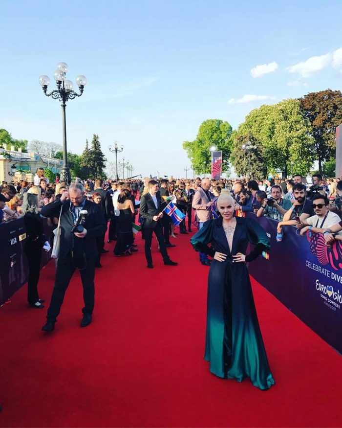 The 2017 Eurovisoin Song Contest in Kyiv, Ukraine is tomorrow and Iceland’s Svala Bjorgvinsdottir and her team is all set to perform her song Paper. When interviewed on the red carped yesterday she told reporters that she’s ready for tomorrow and super excited to perform. “The big day is tomorrow but today, Monday is no less important” she told reporters. Today the contesters perform before the judges who give their vote, which counts as 50% with the popular vote tomorrow making up the other 50%. Tomorrow night she will be the 13th contester to take the stage and then its up to the vote. “This is the longest red carped I’ve ever walked” Svala told reporters, “its incredibly long.” She certainly managed to charm reporters while walking the 250-meter long carped, sporting Icelandic design. “I’m wearing clothes by Yr Thrastardottir, her label is called Another Creation, its actually an over-all with a clip on skirt in case I want to dance” she informed reporters with a big smile.