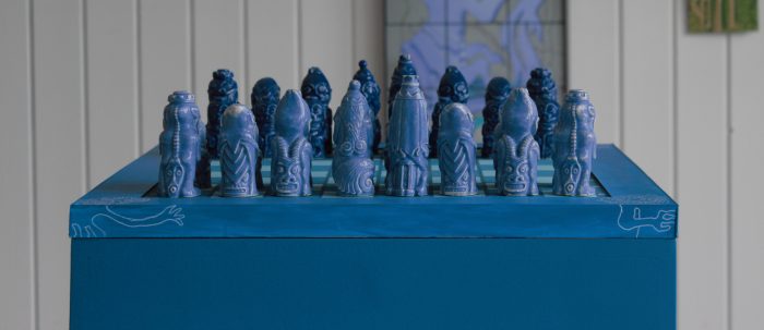 So far only three sets of chess pieces have been made, one is on display in the Danish town of Tønder, where the artist currently recites, one is with the Viking Circle and one is on its way to Greenland where Hrókurinn chess club will auction it off in a last effort to support the towns hit by the natural disaster that devastated Greenland’s West and North-West coast when it was hit by a tsunami in June caused by a huge landslide following an earthquake in the area. Over 35 millions Iskr have been gathered in an effort called Vinátta í verki which translates as Friendship in action, aimed to help rebuilt the communities hit by natural disaster in on 18 June.
